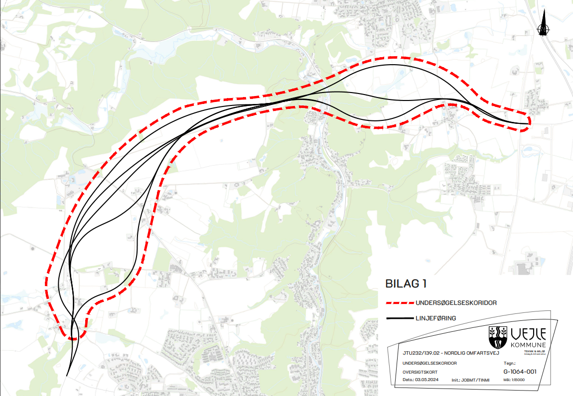 I vedhæftede links finder du anlægsbevillingen til miljøkonsekvensvurderingen for omfartsvejen nord om Vejle. Se også oplægget fra borgermødet afholdt i Grejs Kulturcenter 13. august 2024.