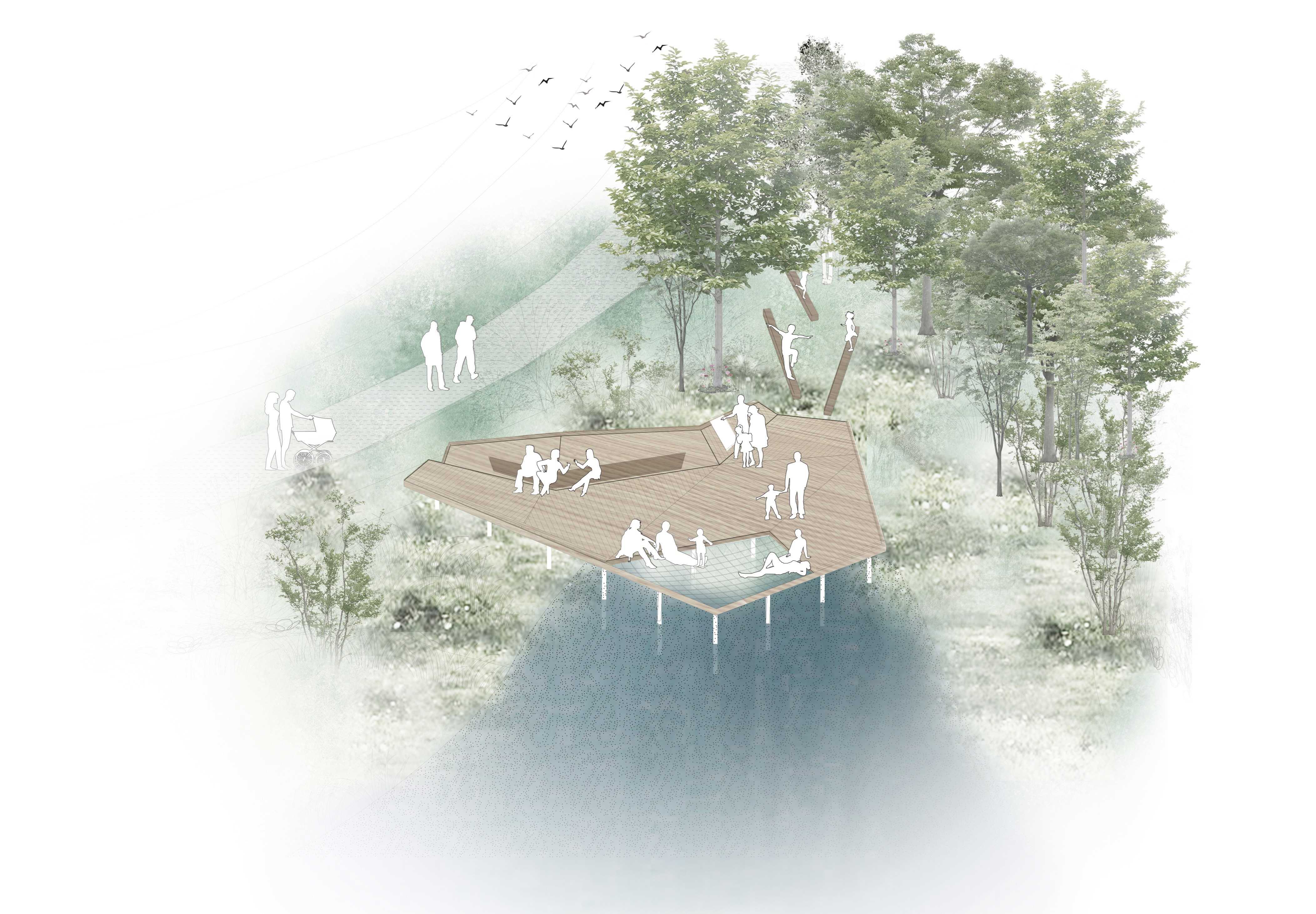 Der laves også tre nye såkaldte vandstationer: Udsigtsplateauet, Søterrassen og Åoasen knyttet til henholdsvis hvert af regnvandsbassinerne og åen.