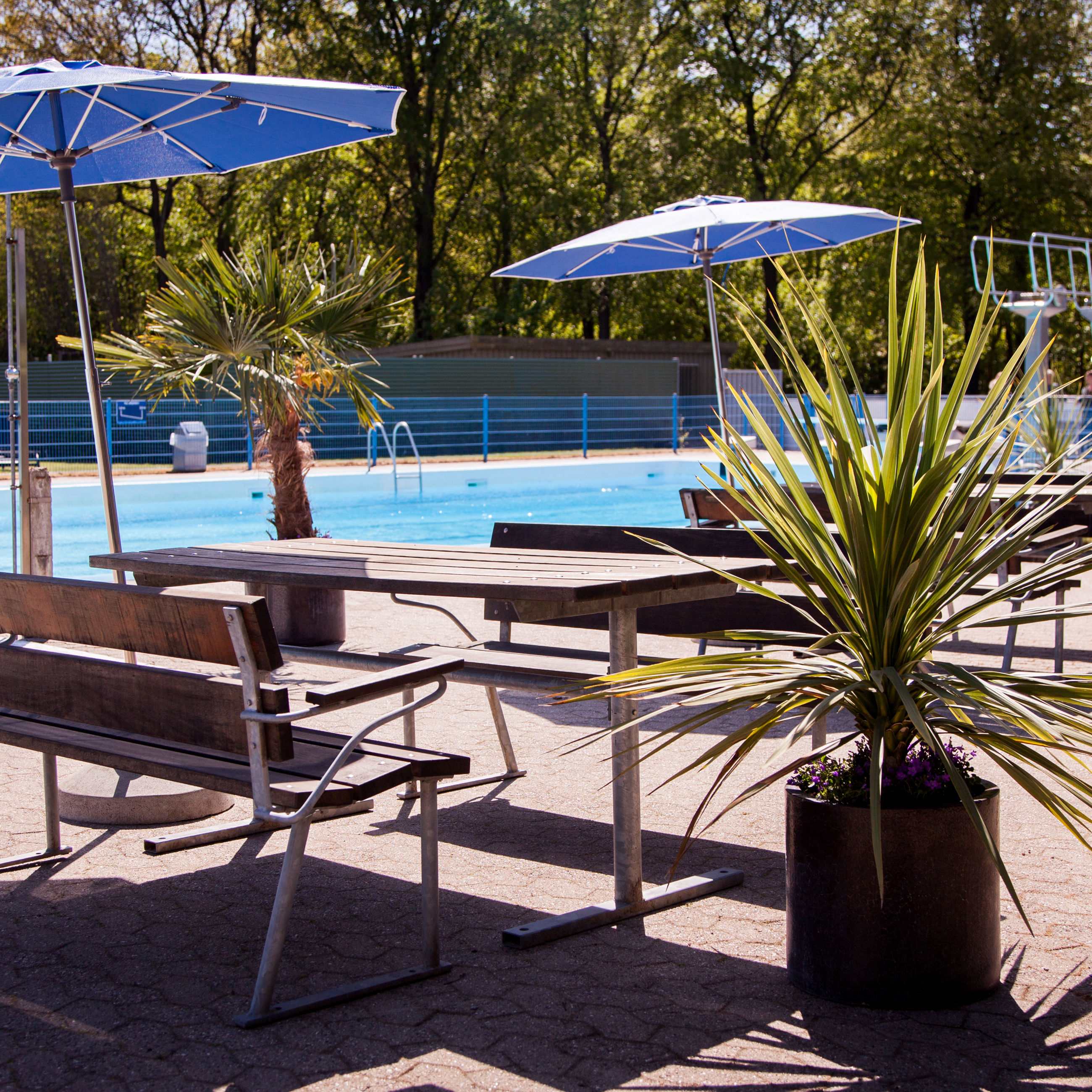 Give Friluftsbad er i 2025 åbent fra 7. juni - 31. august. Det er et friluftsbad med flere opvarmede swimmingpools, og der er god plads til leg.