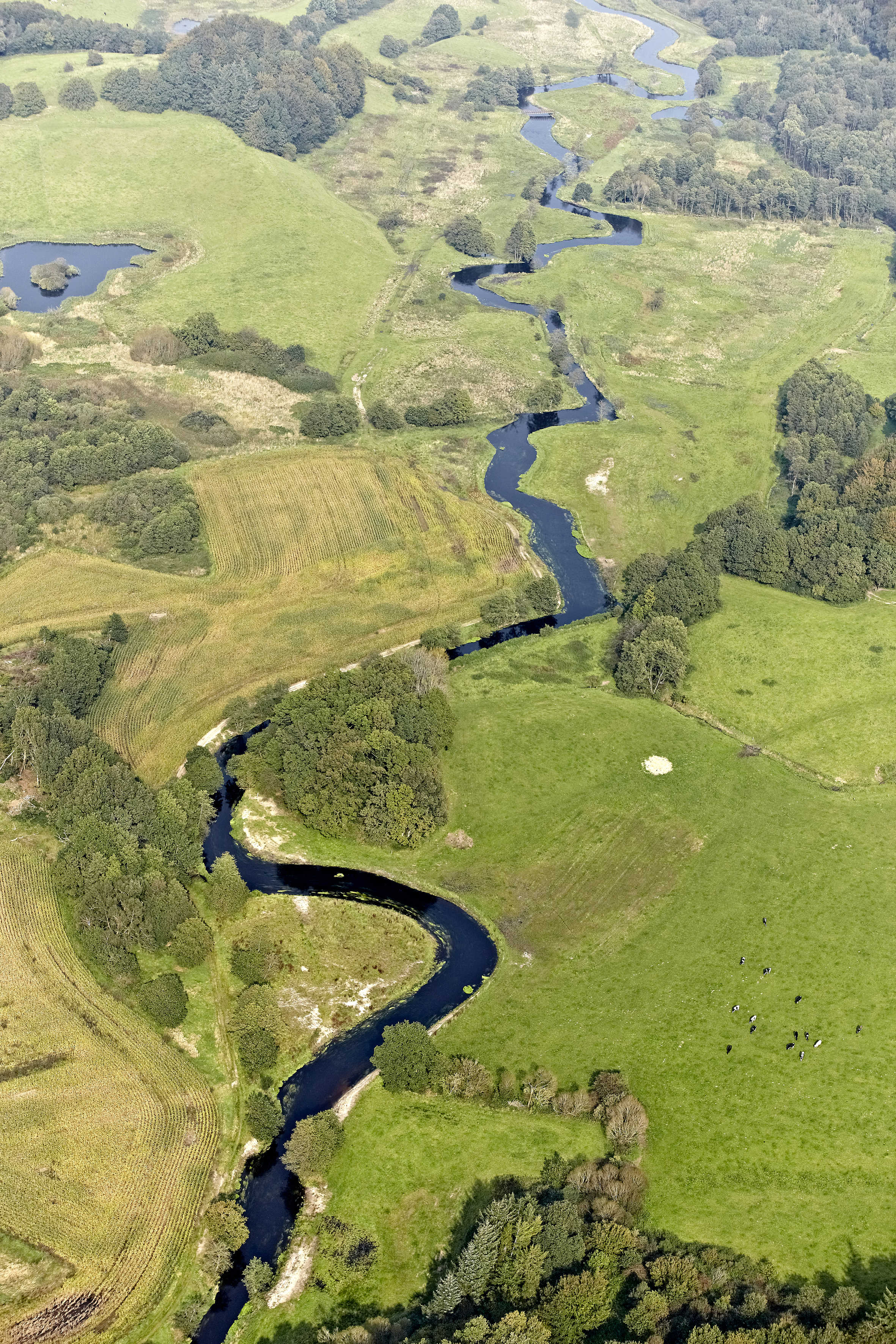 Vejle Å er flere steder blevet genslynget som her ved mellem Runkenbjerg og Tørskind.