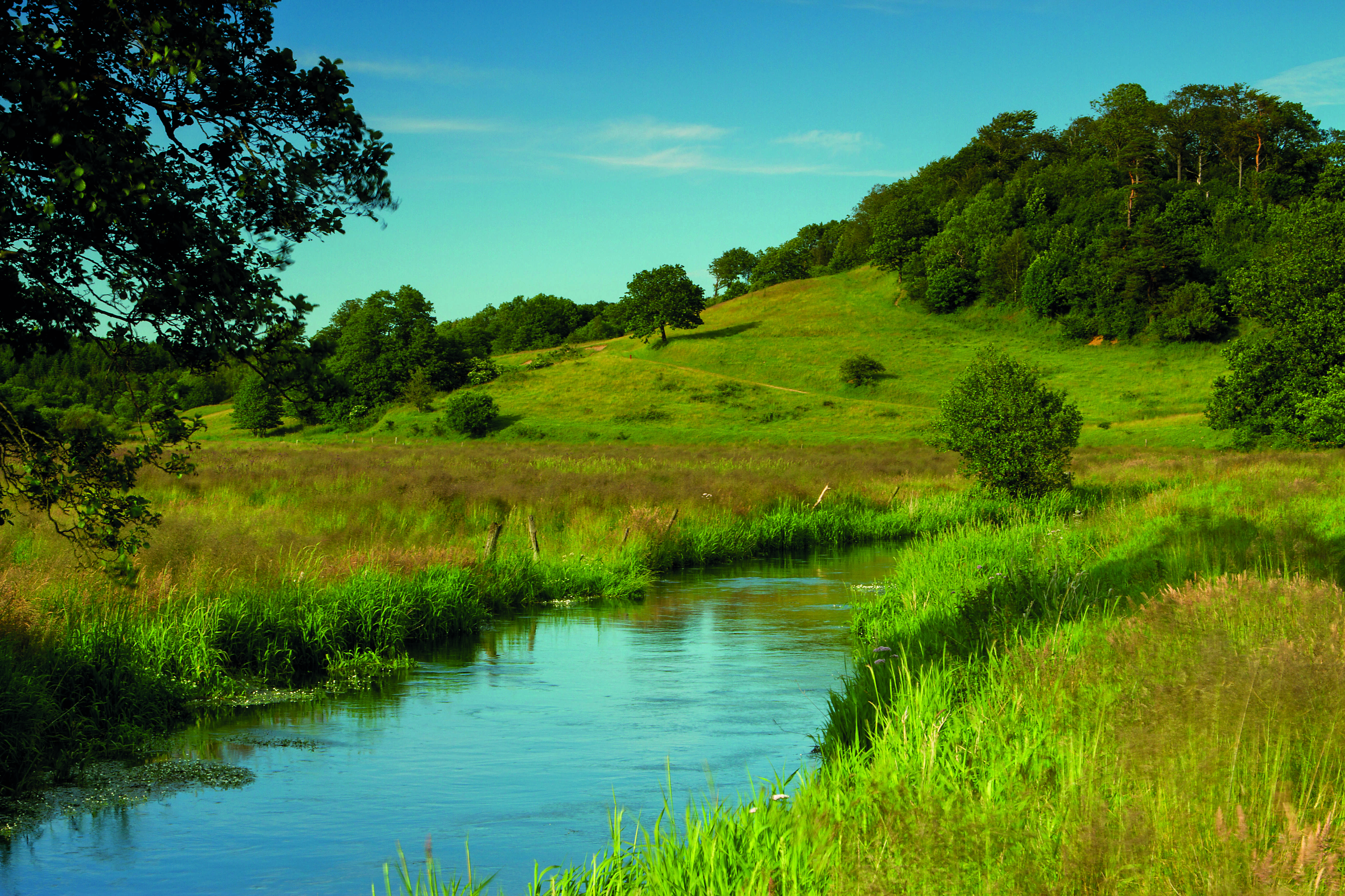Vejle Å tæt på sammenløbet med Egtved Å. Det er Runkenbjerg i baggrunden. (Foto: Mads Fjeldsø)