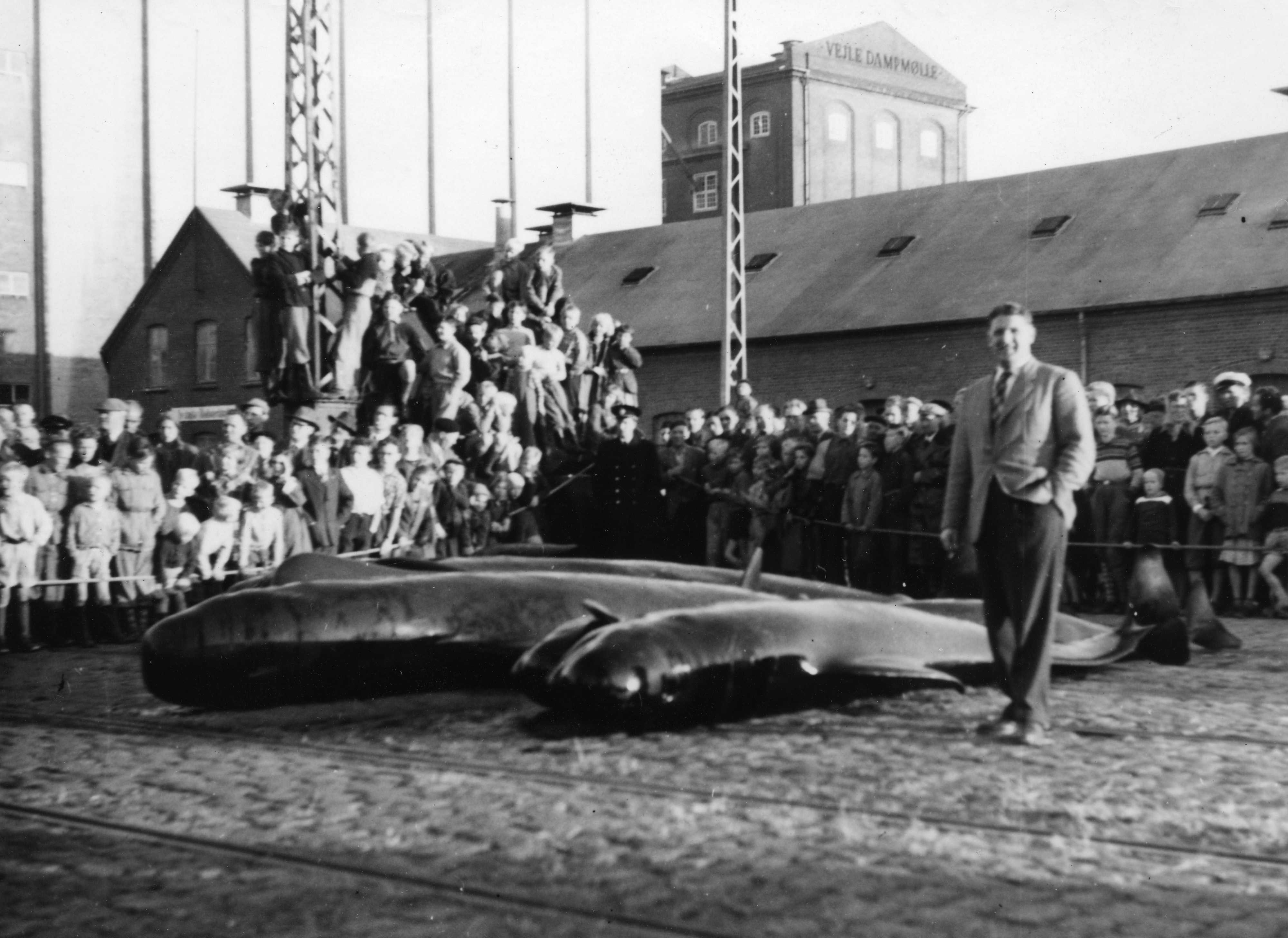 66 grindehvaler forvildede sig i 1954 ind i Vejle Fjord. Lokale fiskere opdagede flokken og drev hvalerne ind på land. Her startede et større blodbad, hvor fiskere og tilskuere dræbte hvalerne med bl.a. knive.