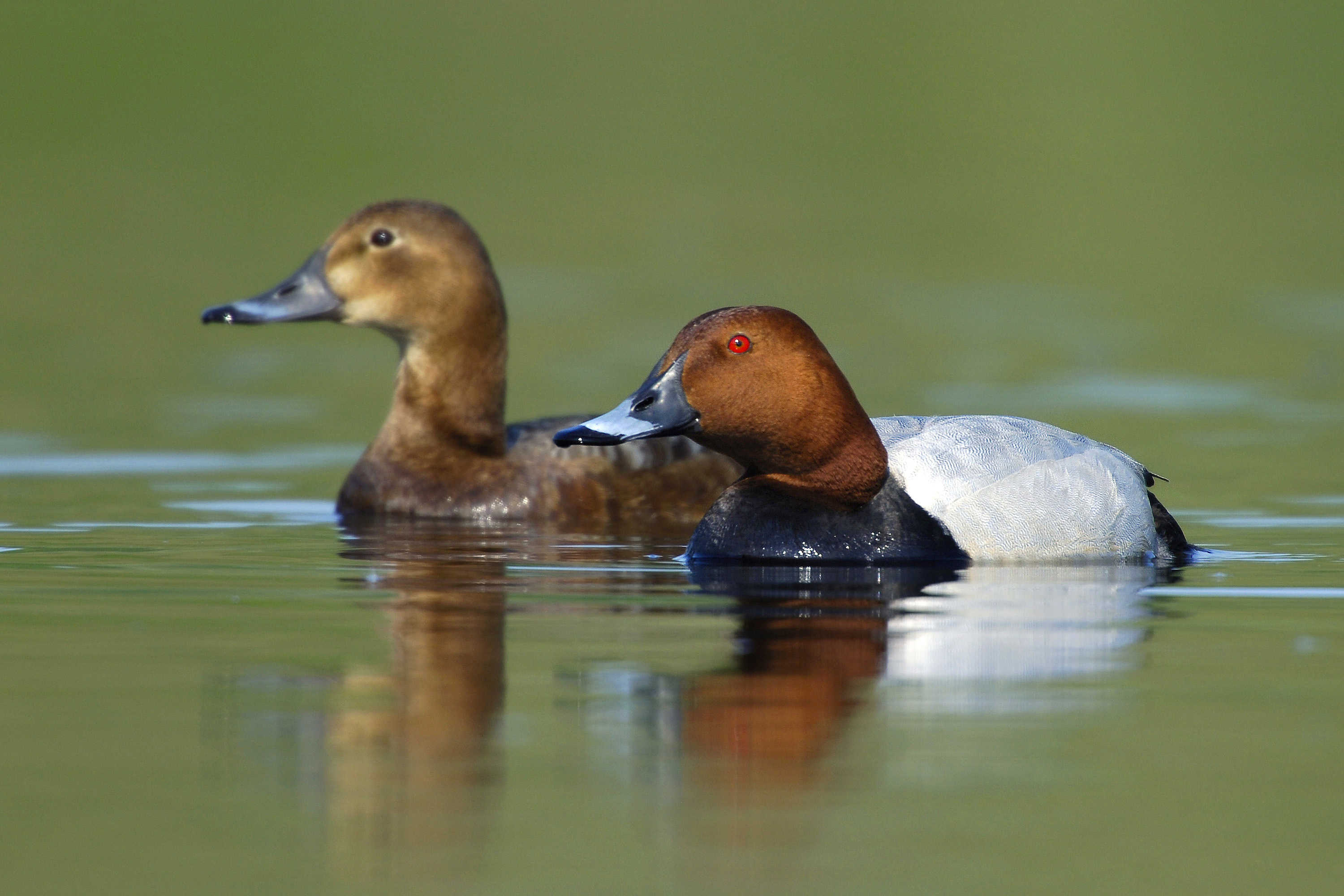 Man ved ikke hvorfor, men hos voksne taffelænder er der langt flere hanner (t.h. på billedet) end hunner. Taffelænder ankommer til Vejle Fjord om efteråret og bliver hele vinteren.