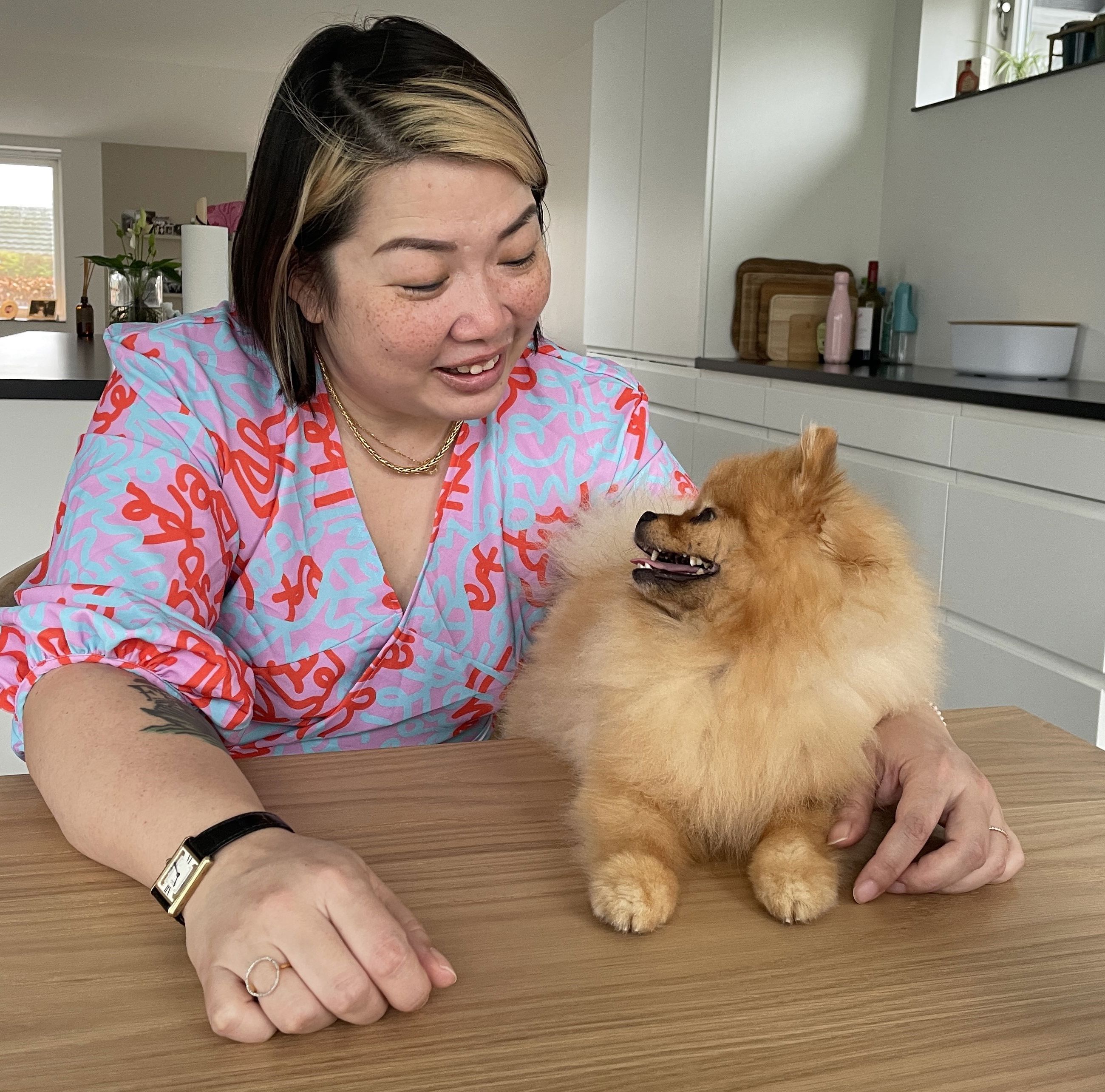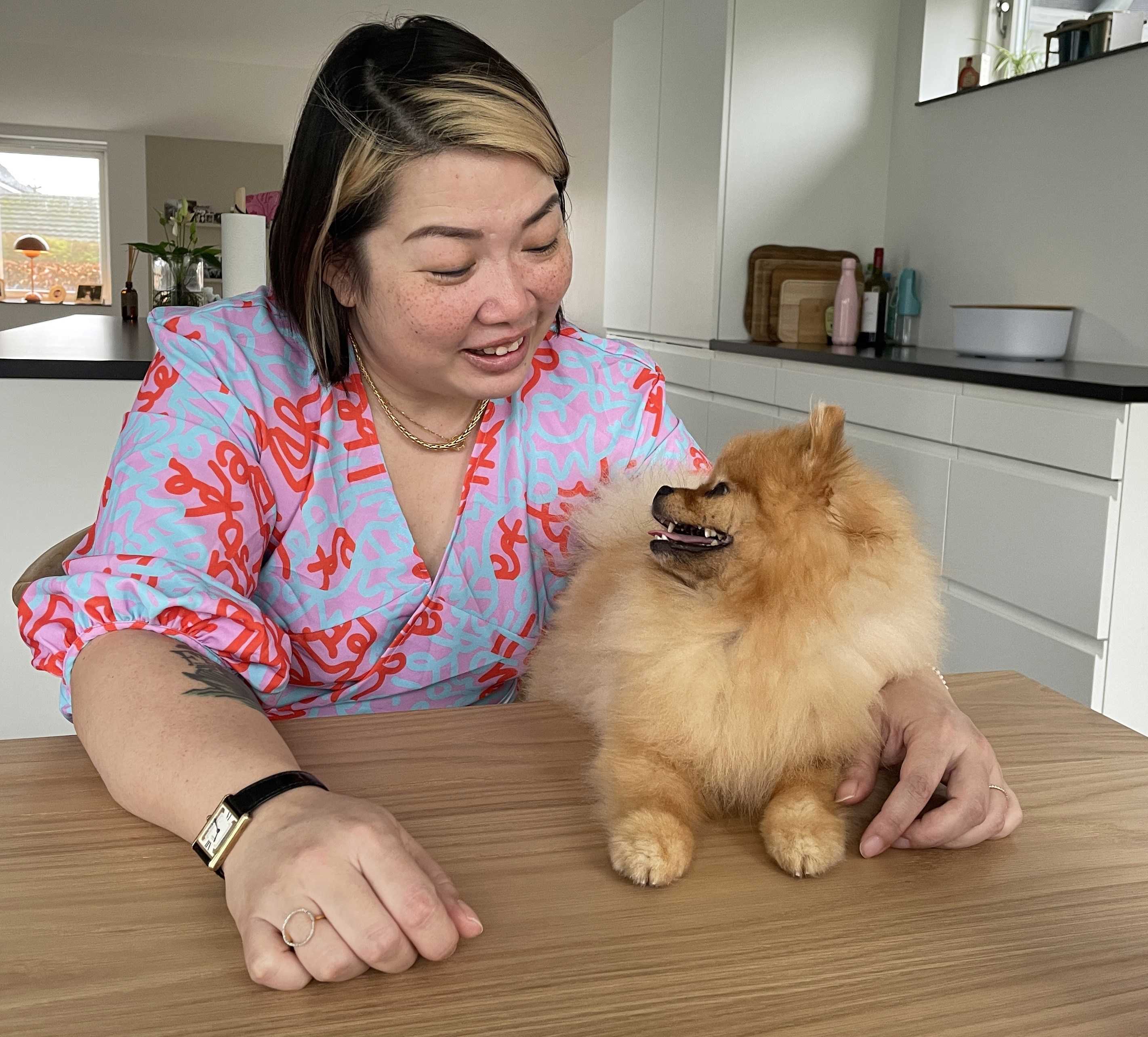 - Det er en tradition, hvor jeg kommer fra. Og det vil jeg gerne holde fast i, forklarer hun og tager Mr Fong – en selvtillidsfuld lille hund af racen miniature pomeranian – op i armene.
