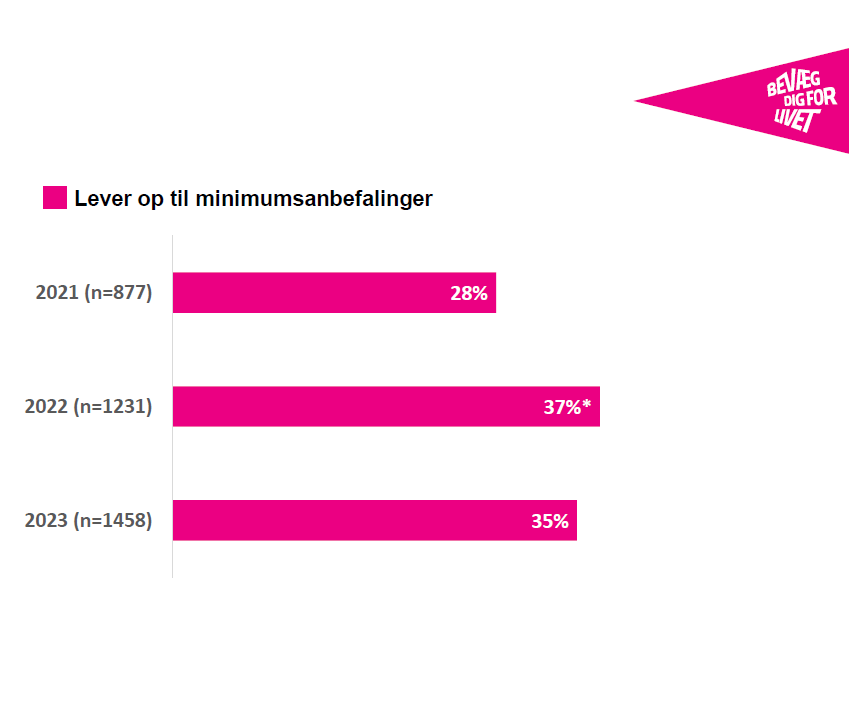Det er 35 procent af de 18-75-årige borgere, som lever op til Sundhedsstyrelsens minimumsanbefalinger for fysisk aktivitet i 2023.