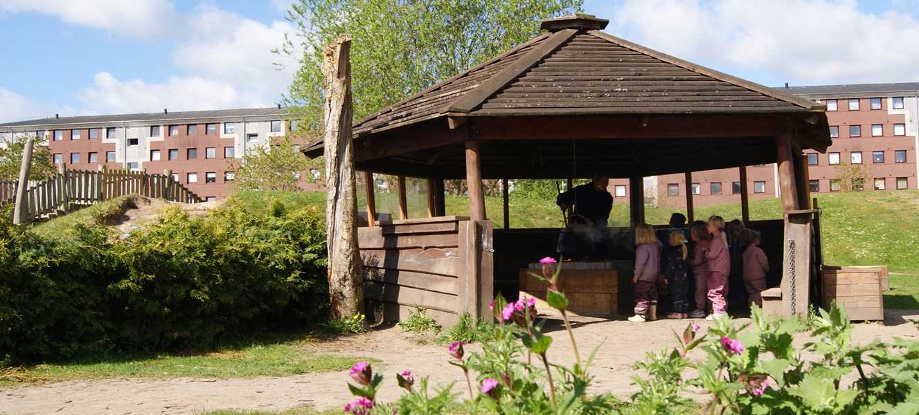 I hele institutionen lægger vi vægt på et aktivt udeliv. Vi er ude i al slags vejr og mærker årstiden skifte og laver mange forskellige aktiviteter der. Vandlege, cykler, cykelvask og vejbane, kører scootere, boldspil, gynger og hængekøjer, bede med urter, blomster og bærbuske.
