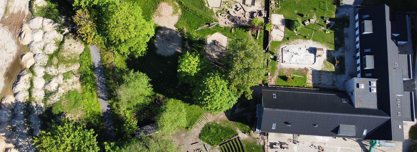 Vi er en naturinstitution beliggende tæt på skov og vand, og vi vægter leg og læring i det fri meget højt. Vores 4 grundværdier er: Udeliv, anerkendelse, fællesskab og nysgerrighed.