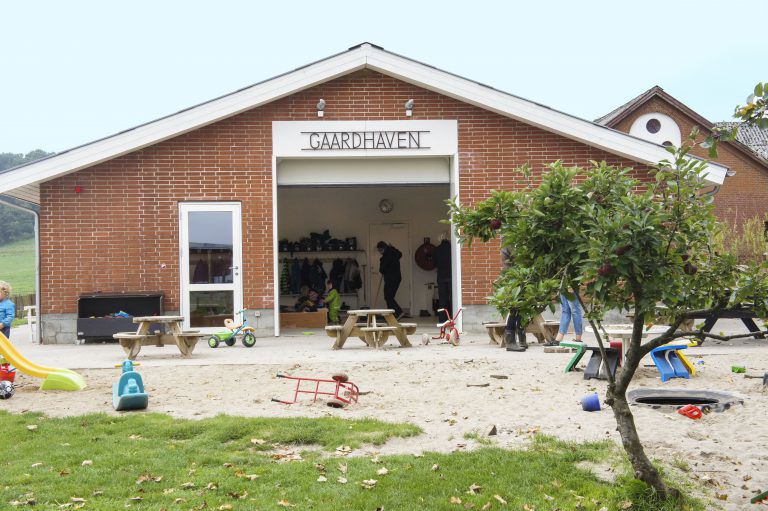 Gaardhaven er på den gamle slægtsgård, Enghavegård. Vi har gennemrenoveret den gamle stald på 400 kvm2. Staldbygningen som har ændret form til børnevenlige funktionelle lokaler, består af lokaler til vuggestuebørn og børnehavebørn.