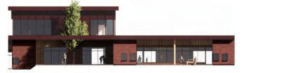 Der er en daginstitution under udførelse på Uhrhøj i Vejle. Der bliver både vuggestue og børnehave. Hvornår den står klar, kan vi ikke sige endnu. Den er endnu ikke navngivet. Billedet er et facadeudsnit fra Lokalplanen, der viser eksempel på daginstitutionens udtryk samt indgangsområde med et træ.