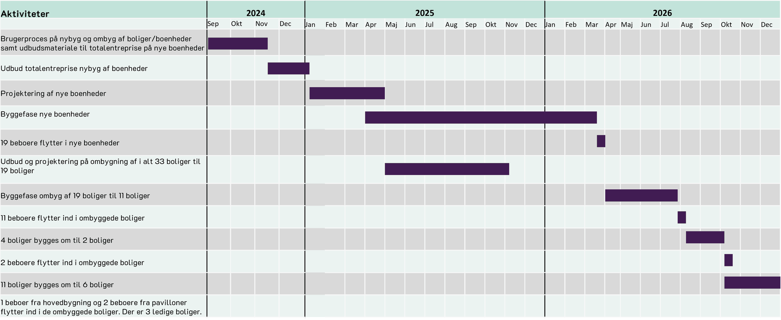 Med ombygningen udvides kapaciteten på de nuværende 34 nedslidte 1-2 værelses boliger uden køkken til 38 moderne 2-værelses lejligheder med eget køkken. RusmiddelCenter Døgns otte pladser og Specialafdelingens fem pladser fastholdes uændret.