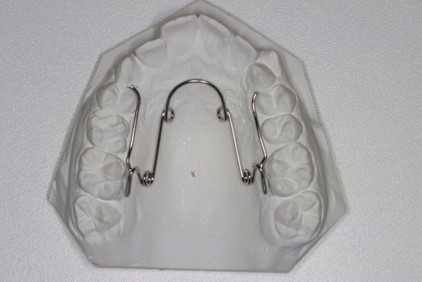 Sidder på tandbånd og ligger langs ganen, for at holde eller ændre på 6-års tænderne i overkæben. Desuden kan den holde eller øge tandbuens bredde.
